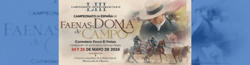 El pasado viernes 24 de mayo de 2024, se celebró el esperado Campeonato de España de Faenas y Doma de Campo en la Finca El Freixo, propiedad del famoso torero El Juli, en Extremadura. Este destacado torneo tuvo lugar los días 24 y 25 de mayo y contó con la participación de 43 binomios provenientes de Castilla La Mancha, Castilla y León, Andalucía, Extremadura y Portugal.