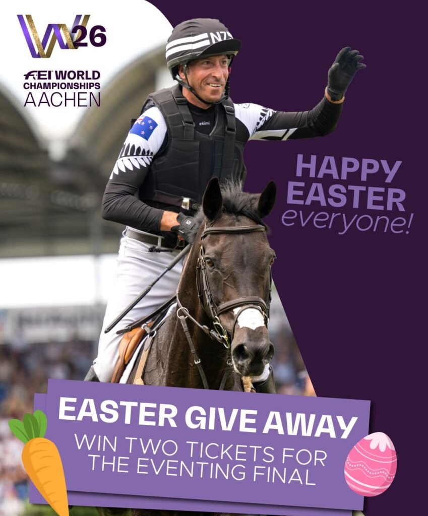 La organización de los FEI World Championships Aachen 2026 ha puesto en marcha un sorteo especial de Pascua que permitirá a los aficionados ganar dos entradas para la Final de Concurso Completo, una de las jornadas más esperadas del campeonato. El premio ofrece la oportunidad de asistir el 16 de agosto a la decisiva prueba de salto, donde se coronarán los nuevos campeones del mundo de Concurso Completo.