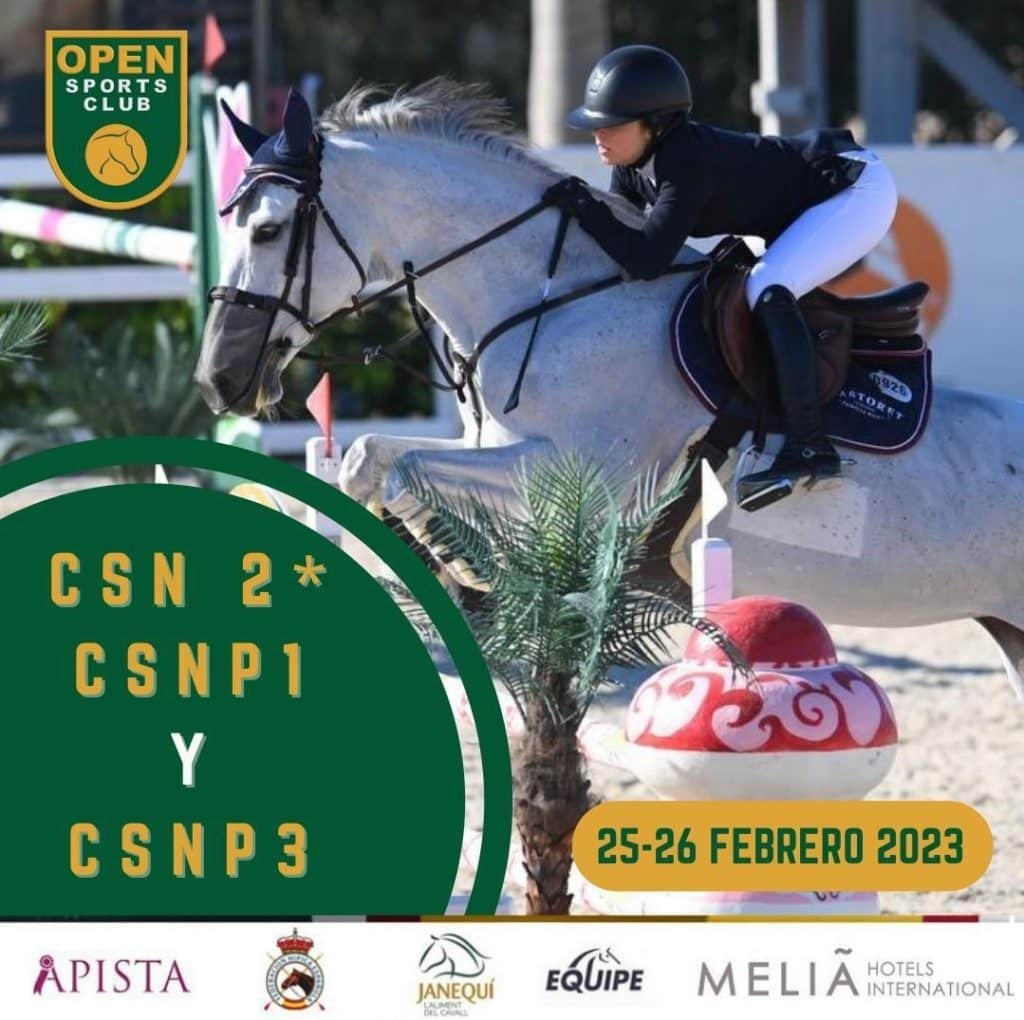 Tras anunciarlo en redes sociales, el Open Sports Club arranca la temporada 2023 de concursos el próximo fin de semana, 25-26 de Febrero en el cual celebrarán un CSN2*. CSNP1* y CSNP3*.