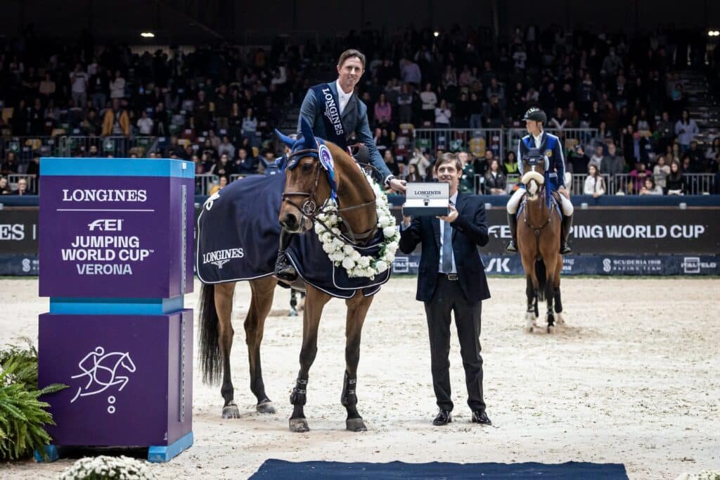 Ben Maher, que actualmente ocupa el segundo lugar del Ranking de Longines, ganó el Gran Premio del domingo de la Copa del Mundo montando a “Dallas Vegas Batilly”. El jinete británico superó por escasas dos décimas de segundo a Steve Guerdat y “Venard de Cerisy”.