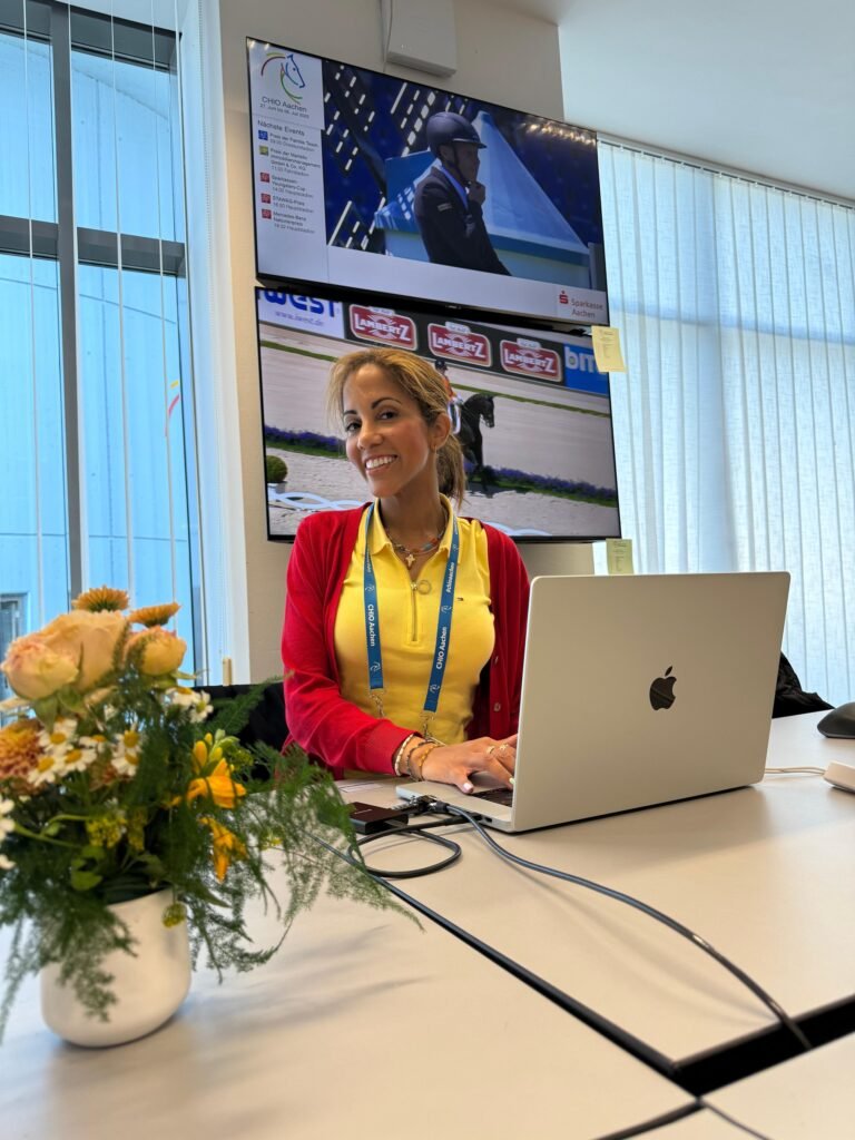 El siguiente destino fue, sin duda, uno de los más especiales de lo que llevamos de año: el CHIO Aachen. No hay palabras suficientes para describir lo que significa trabajar en uno de los concursos más importantes del mundo. El nivel deportivo, la organización, el respeto por la hípica… convierten a Aachen en la meca de la equitación. Desde allí, fuimos corresponsales españoles, contando al detalle lo que ocurría en las sagradas pistas del Soers.