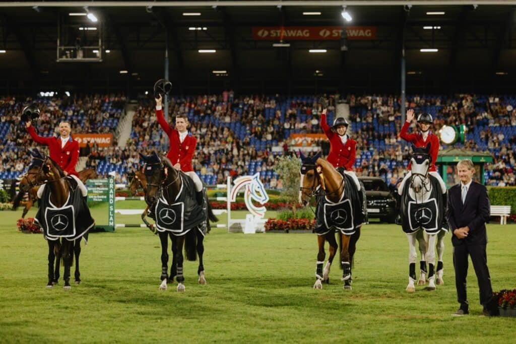 McLain Ward, que sumó su segunda escarapela dorada tras ganar el STAWAG-Prize, fue contundente: “Para mí, esta pista es terreno sagrado. Es la cumbre del deporte. La atmósfera y el público son incomparables. Siempre es un honor ganar aquí. Estuve en dos equipos ganadores de la Copa de Naciones, pero luego pasamos una sequía… así que estar de nuevo en esta posición es fantástico.”