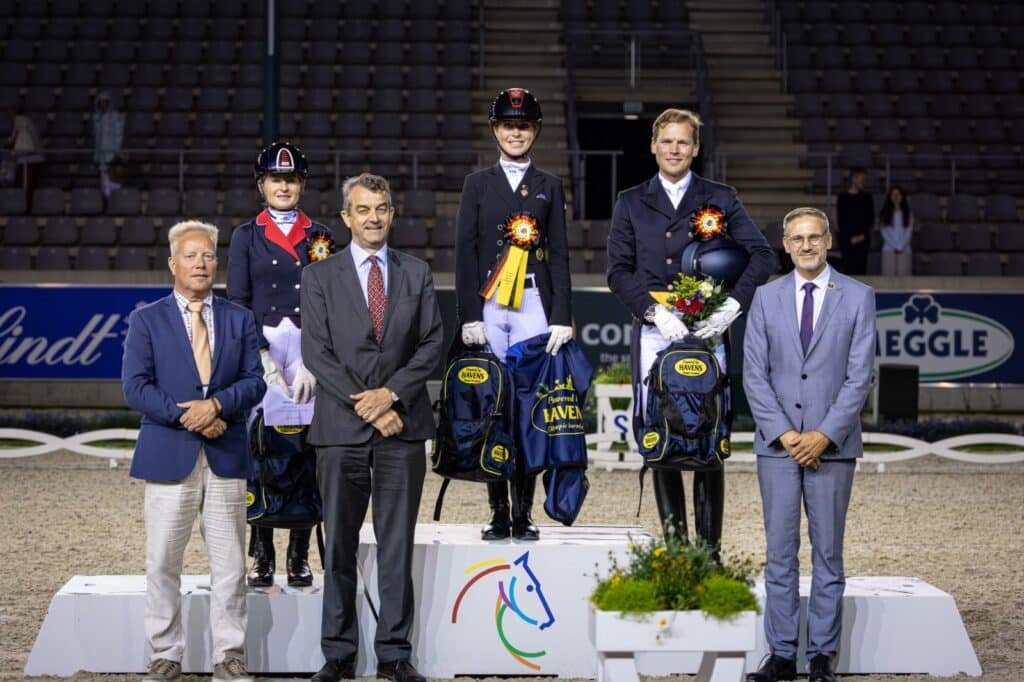Más tarde, en la ceremonia de premiación, Isabel Freese y sus compañeras pudieron desatar toda su alegría: los caballos fueron liberados de dar la vuelta de honor, y los jinetes realizaron un “lap of honour” a pie, corriendo con entusiasmo por la pista, celebrando un momento inolvidable bajo el cielo de Aachen.