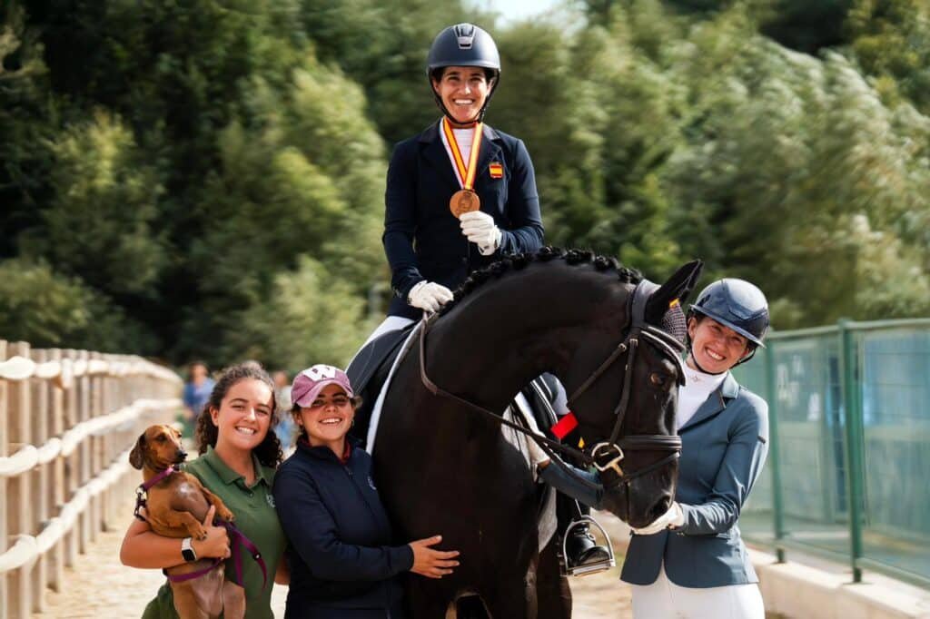 Nuestra Chacco Rider, Cristina Torrent, quedó bronce en el Campeonato de España de Caballos Jóvenes de Doma Clásica 2025 con Dumas en la categoría de cuatro años. Durante la jornada del sábado hizo una media de 78.200%, mientras que la del domingo, una de 77.000%. Estas notas hicieron que la medalla fuese para ellos