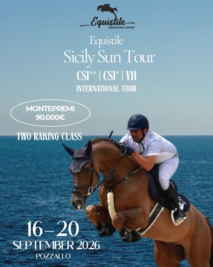Sicilia se prepara para recibir uno de los proyectos ecuestres más ambiciosos del Mediterráneo: el Equistile Sicily Sun Tour, un nuevo tour internacional que combina deporte, turismo y la identidad cultural de la isla. Organizado por el Equistile Equestrian Center en Pozzallo, el circuito contará con dos concursos FEI en 2026, ambos con pruebas CSI2*, CSI1* y Young Horses (YH), y una infraestructura diseñada para acoger a jinetes y caballos en condiciones óptimas.