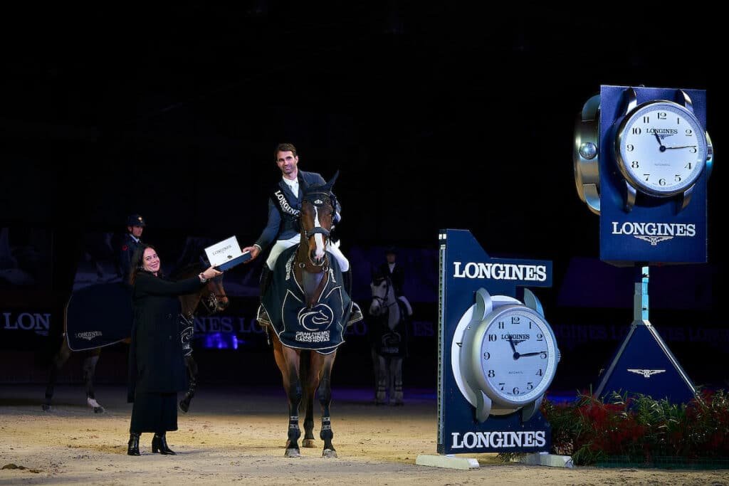 El ganador del Gran Premio Longines, el francés Julien Anquetin, recibió el trofeo de manos de Flora Pérez Marcote en representación de Casas Novas, y posteriormente, Elena Orozco, Brand Manager de Longines España, le entregó el reloj Longines.