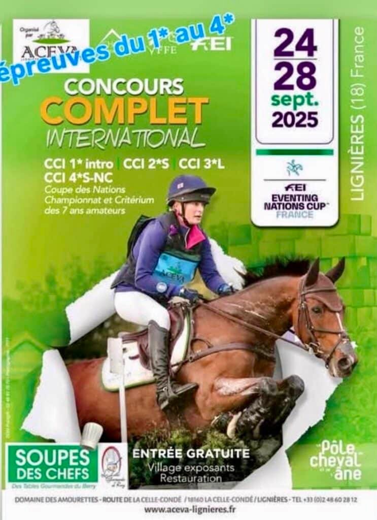 Del 25 al 28 de septiembre se está celebrando en Lignières, Francia, un CCIO4*-S-NC en el que España está presente ( https://mundoequestre.com/espana-anuncia-los-binomios-seleccionados-para-la-copa-de-naciones-de-cce-de-lignieres/ )con un equipo nacional y varios jinetes en distintas categorías. Paralelamente se disputarán pruebas de CCI*-Intro, CCI2*-S, CCI3*-L y CCI4*-S.