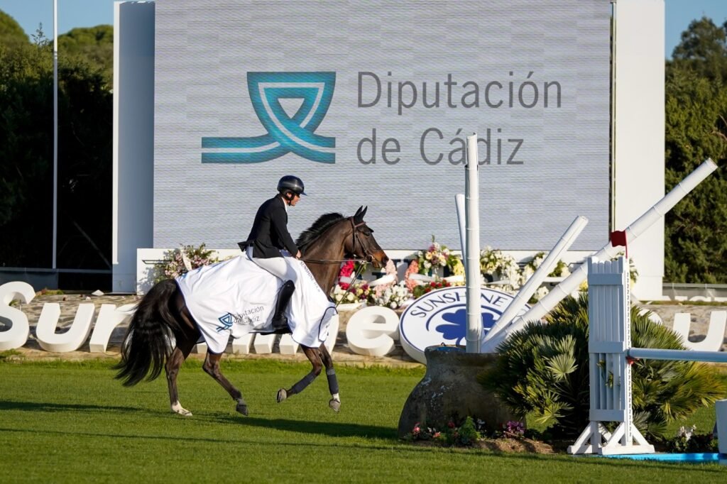 Vejer, 19 de febrero de 2026. Los jinetes españoles se hicieron notar en el inicio de las pruebas del tercer CSI4* del Andalucía Sunshine Tour. El Trofeo Diputación de Cádiz de 1’50 metros, teñido de rojo y gualda, tuvo un claro dominio español y coronó como vencedor a Julio Arias.