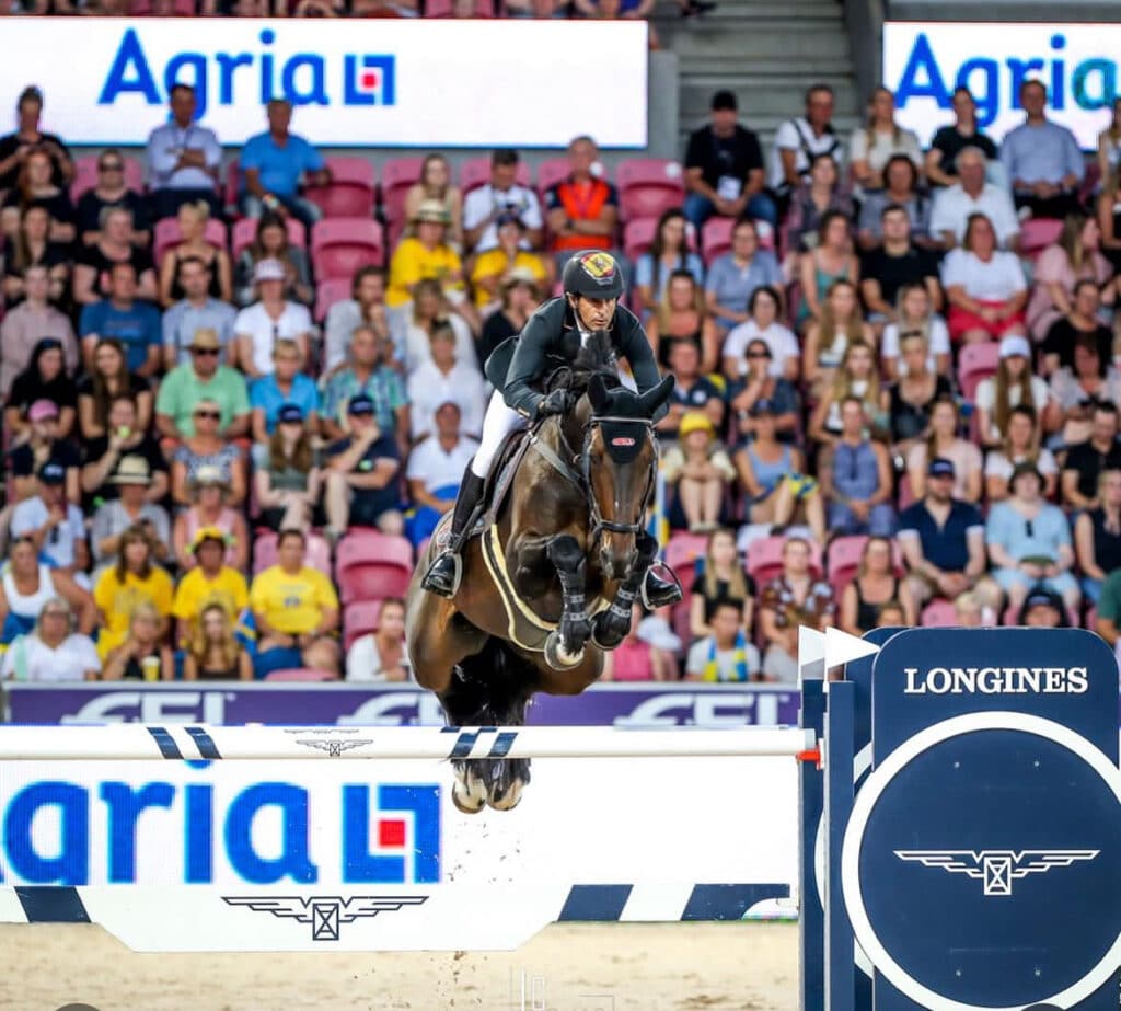 Por su parte, Álvaro González de Zárate cogió el testigo de su hermano Kevin, vencedor en la primera calificativa de caballos jóvenes de siete años, y se hizo con la victoria en la segunda, con un crono de 74.75 segundos. Rozando este tiempo, con 74.78 segundos, ocupó la segunda posición Hugo Álvarez Amaro con ‘Yax VD Berghoeve’ y con 74.80 segundos Julio Arias Cuevas con ‘Peanuts Van Baublo’ fue tercero en esta ajustadísima y emocionante prueba. Así, tras la disputa de las dos calificativas son tres los conjuntos que se mantienen con cero puntos en el cómputo global del Campeonato: Guillermo González Alonso con ‘Vendetta del Capellán’; Joaquín Tinao con ‘Chipo Lata Z’ y Julio Arias con ‘Peanuts Van Baublo’.