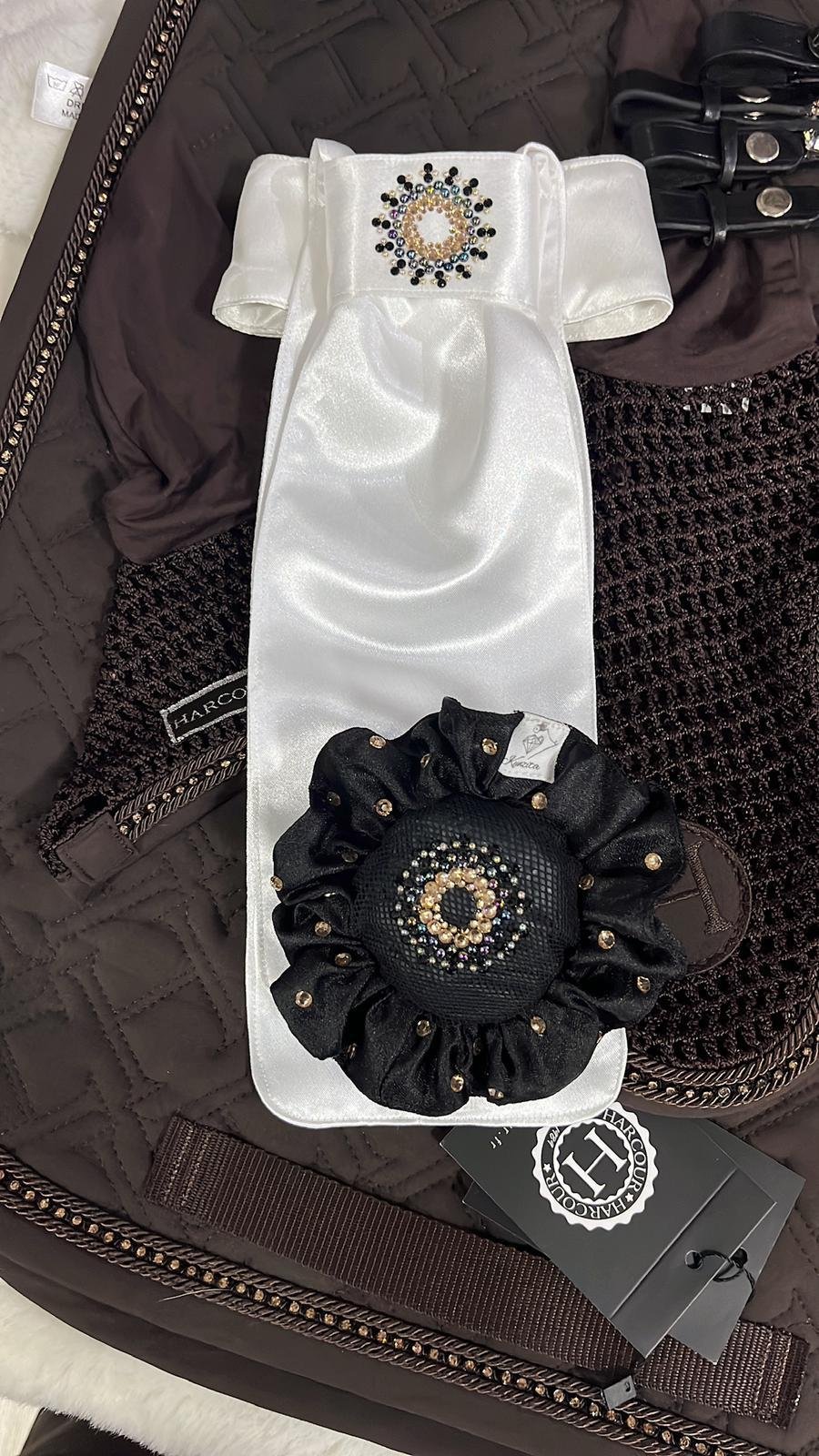 Uno de los rasgos que definen a Kunzita Equestrian es su proceso completamente artesanal. Cada accesorio (desde plastrones hasta scrunchies o adornos para el moño) se elabora pieza a pieza, cuidando tanto la estética como la funcionalidad.
