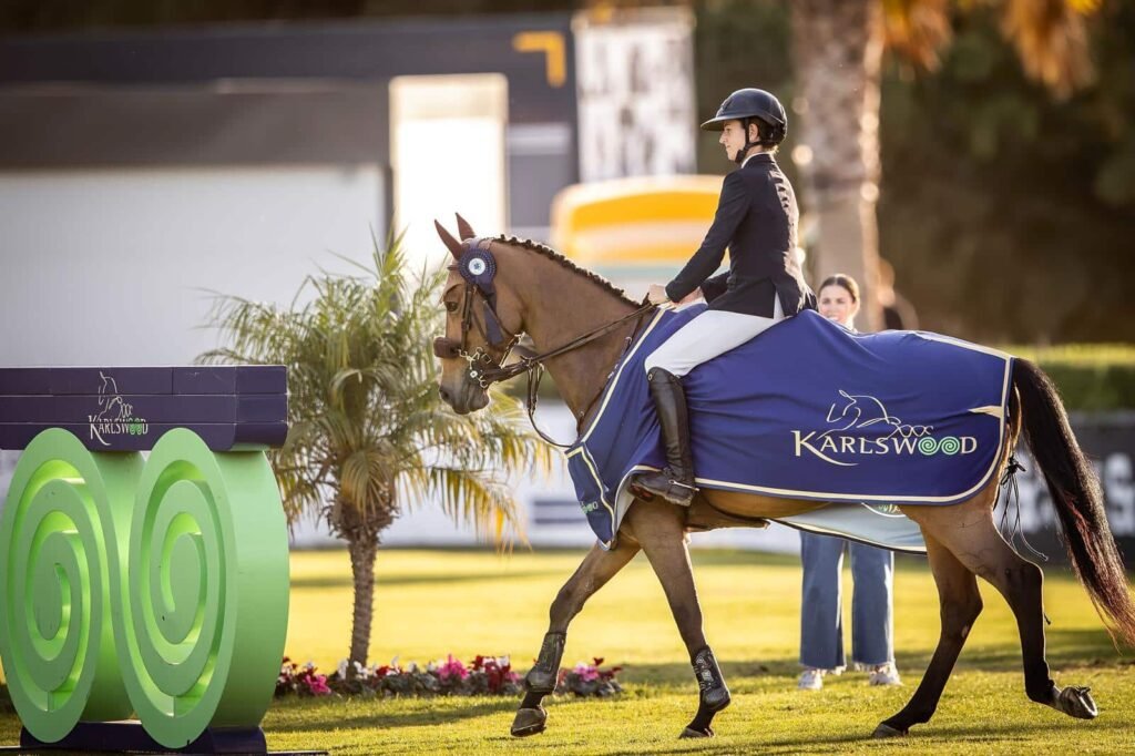 Vejer, 31 de octubre de 2025. La amazona española Imma Roquet Autonell ha firmado hoy una brillantísima actuación en el Trofeo Karslwood, culminando el recorrido de Ranking diseñado a 1.50 metros en la pista verde principal David Broome en unos increíbles 65.83 segundos. Lo hizo con Irivola del Maset, una yegua de 10 años hija de Indret del Maset x Quidam de Revel propiedad de Maset Sport Horses S.L., adelantando por solo una décima de segundo al neerlandés Rogier Linssen con Moneypenny (Sea Coast Don’t Touch Tiji) que se colocaron en la segunda posición. El británico Joe Whitaker con Hulahupe JR fue tercero; mientras que el irlandés Max Wachman con Tipperary y el sueco Adam Carey con Quebello D completaron el podio de la prueba 4 estrellas.