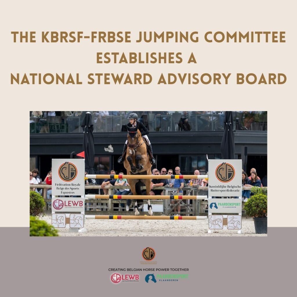 La Comisión Nacional de Salto de la Koninklijke Belgische Ruitersport Federatie (KBRFS) ha anunciado la creación del National Steward (comisarios oficiales) Advisory Board, un nuevo órgano destinado a acompañar y asesorar a los comisarios oficiales de Salto en Bélgica ante la creciente relevancia y complejidad técnica de esta función en las competiciones.