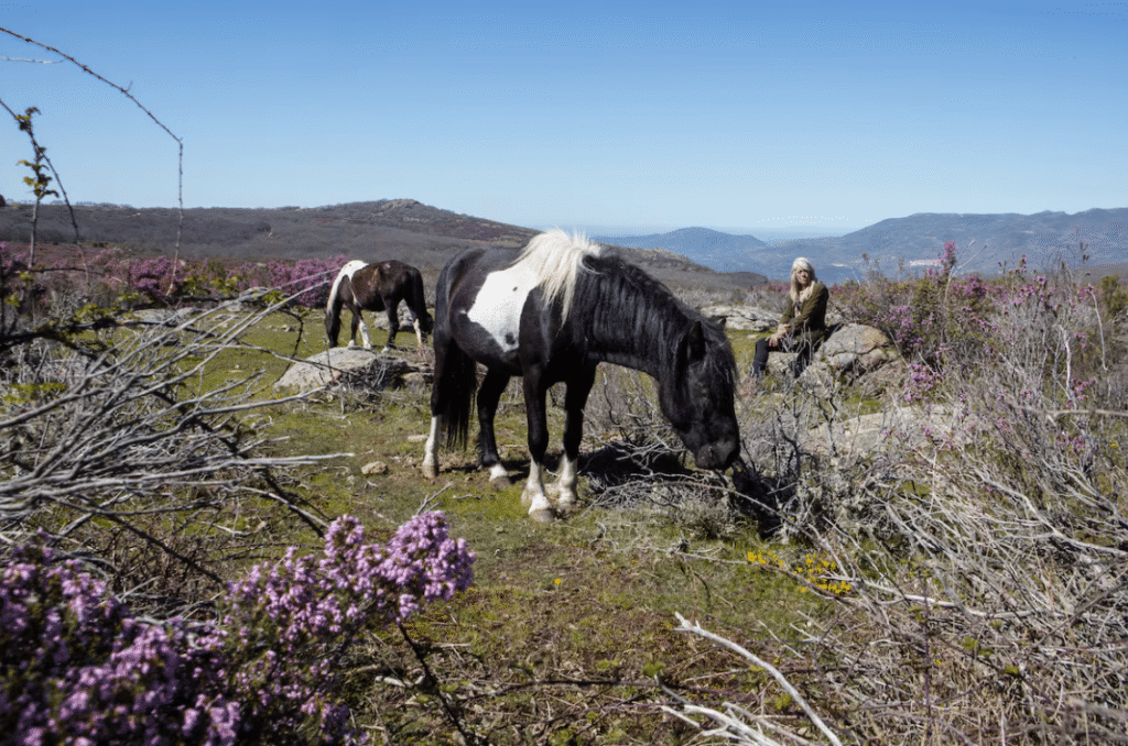 En la sierra de Tormantos, al norte de Cáceres, la etóloga y domadora británica Lucy Rees cuenta con un singular experimento en el que se incluye una manada de entre 40 y 60 ejemplares de la raza Pottoka que viven en libertad en una finca de unas 1.000 hectáreas.