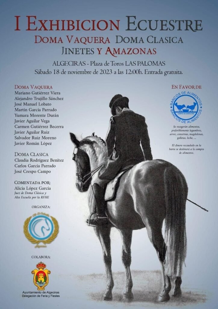 Algeciras celebró la I Exhibición ecuestre de Doma Vaquera, Doma Clásica, Jinetes y Amazonas. El evento, que tuvo lugar en la Plaza de Toros Las Palomas el pasado sábado 18 de noviembre como objetivo inicial recaudar fondos para el Banco de Alimentos.