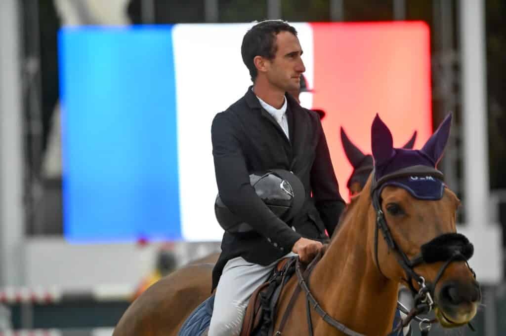 Vejer de la Frontera, 19 de octubre de 2022. Ayer, el jinete francés Harold Boisset volvió a vencer en la prueba más importante de la jornada. Tras ganar ayer en siete años, hoy se ha impuesto en el Trofeo Ayuntamiento de Vejer de la Frontera con ‘T’Obetty du Domaine’ saltado a 1.45 metros en la pista de arena principal Milton. Se trata de una yegua de 16 años hija de ‘Kashmir Van Schuttershof’ x ‘Diams du Grasset’, propiedad de Bertrand Barascud. Con ella culminó el recorrido en 64.51 segundos, un velocísimo crono que le valió para superar al español Jesús Garmendia Echevarría que se mantuvo como líder gran parte de la prueba en la que participaron unos 90 binomios.