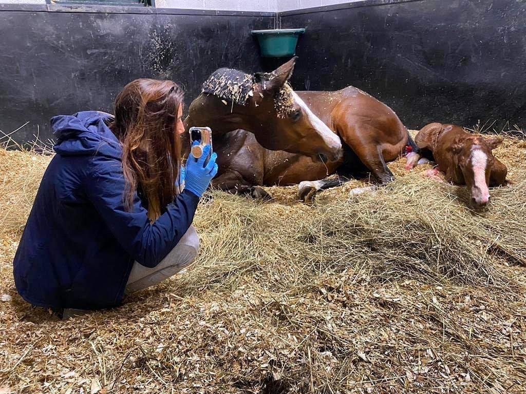 Primer parto que ha asistido Paola con la dirección via facetime de Santiago Cambronero ( Criador español Yeguada del Amor)