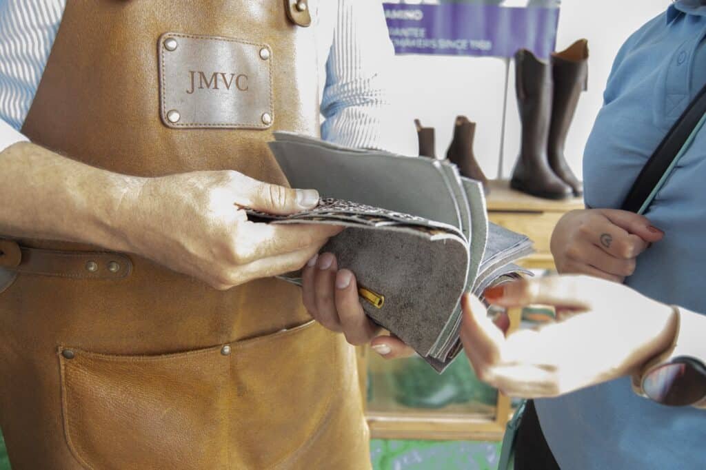 JMVC también se distingue por no utilizar pieles como el cordobán, el boxcalf o pieles exóticas, al provenir estas de un mercado contrario a sus valores, por lo que, los acabados que se pueden apreciar en JMVC, son realizados mediante grabado sobre piel de vacuno, imitando a la perfección las texturas deseadas como serpiente, cocodrilo, etc.
