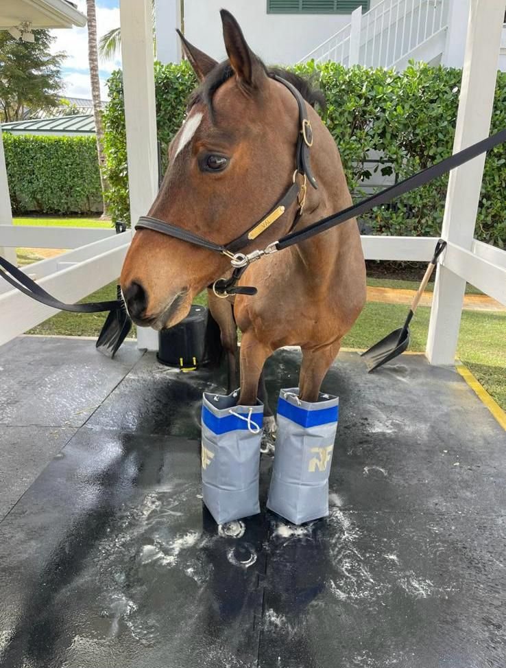 Aplicar frío en ciertas zonas tras entrenar o competir es una práctica cada vez más extendida entre profesionales. El hielo ayuda a desinflamar, favorece la recuperación muscular y articular y previene lesiones, algo que es importantísimo cuando se trata de caballos que saltan a 1,60 metros en los escenarios más exigentes del planeta.