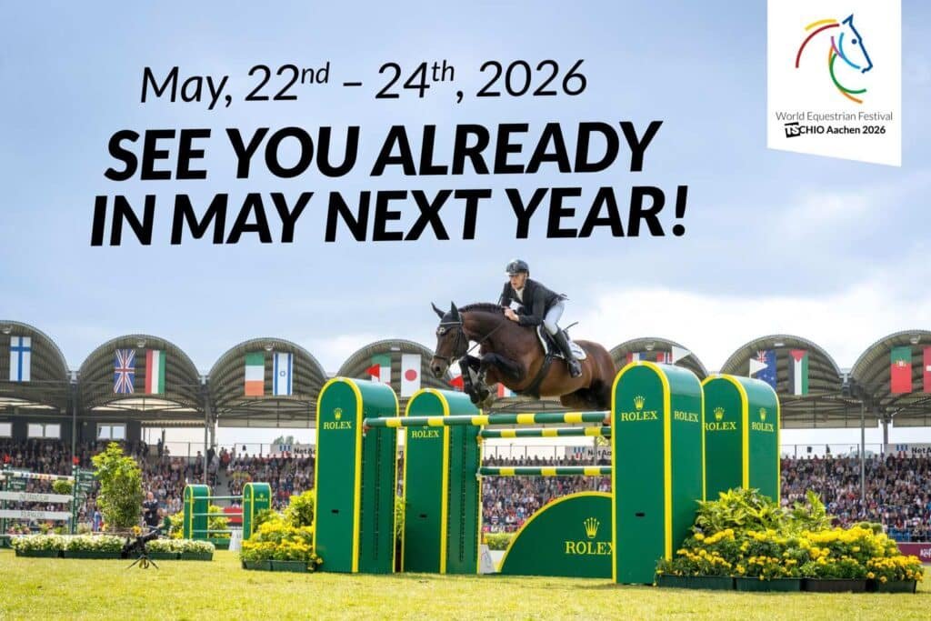 Mientras acaba de sonar el pistoletazo de salida para el CHIO Aachen 2025 y los mejores binomios del mundo se preparan para darlo todo en la pista, los ojos ya están puestos en el próximo año. Y es que 2026 será un año muy especial para los organizadores, Aachen-Laurensberger Rennverein (ALRV), con dos grandes citas marcadas en el calendario.
